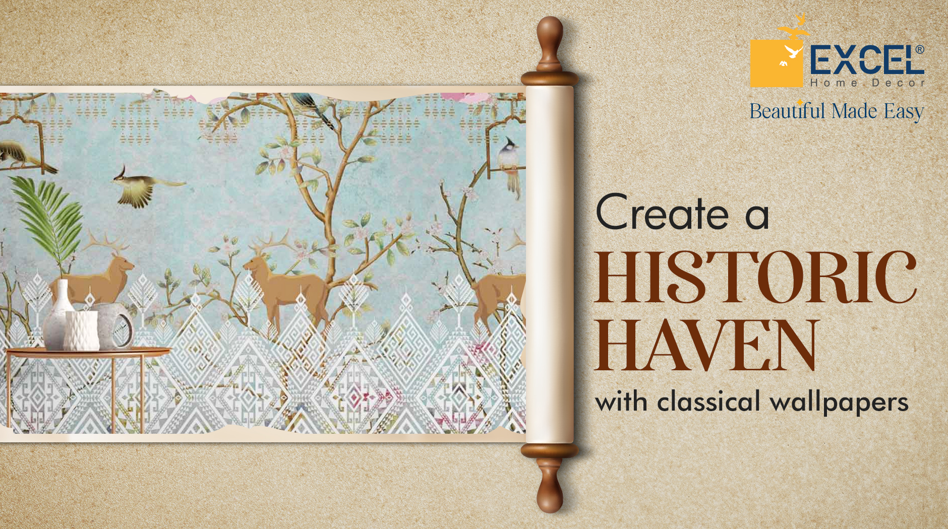 Each design tells a unique story, infusing your space with cultural richness, natural beauty, and artistic heritage. Whether you seek the vibrancy of Rajasthani dolls or the tranquillity of a nature-inspired mural, Excel's collection provides the perfect backdrop for a classically enriched living space.