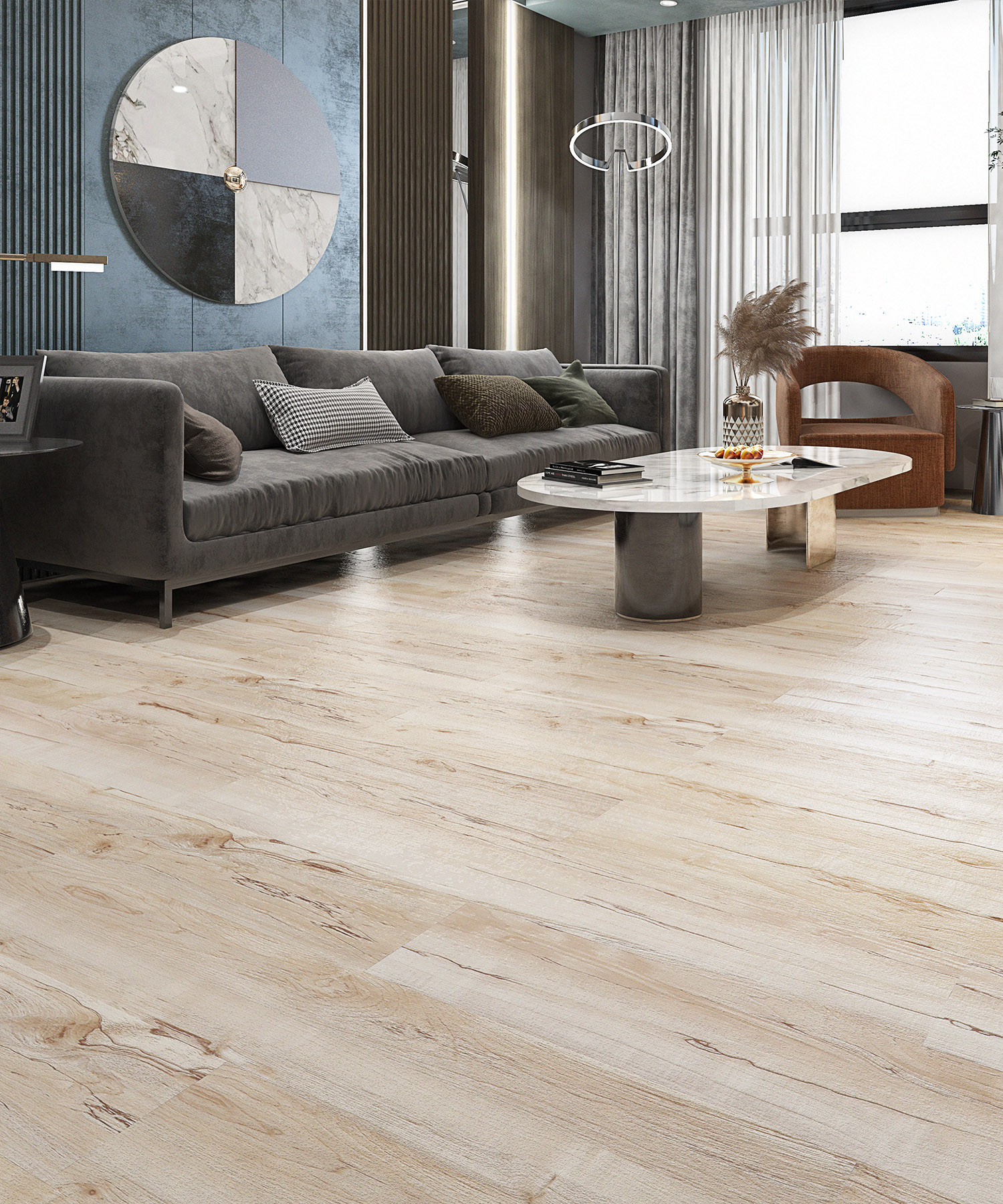 SPC or Stone Polymer Composite is 100% waterproof, designed to install over uneven sub-floors, the most realistic wood-looks with embossed textures, and extremely durable. Its signature rigid core is highly sturdy, making it an ideal choice for high-traffic and commercial environments.