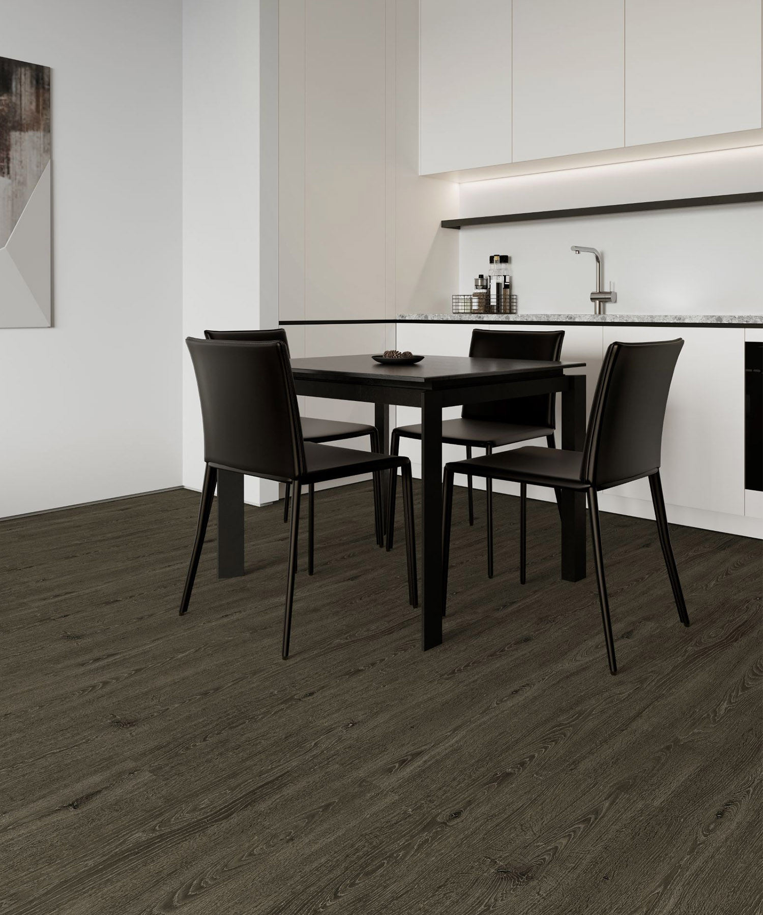 Luxury Vinyl is durable and water proofing option that comes in the form of cut planks designed to look like wood in a very realistic way with glue-down installation ease.