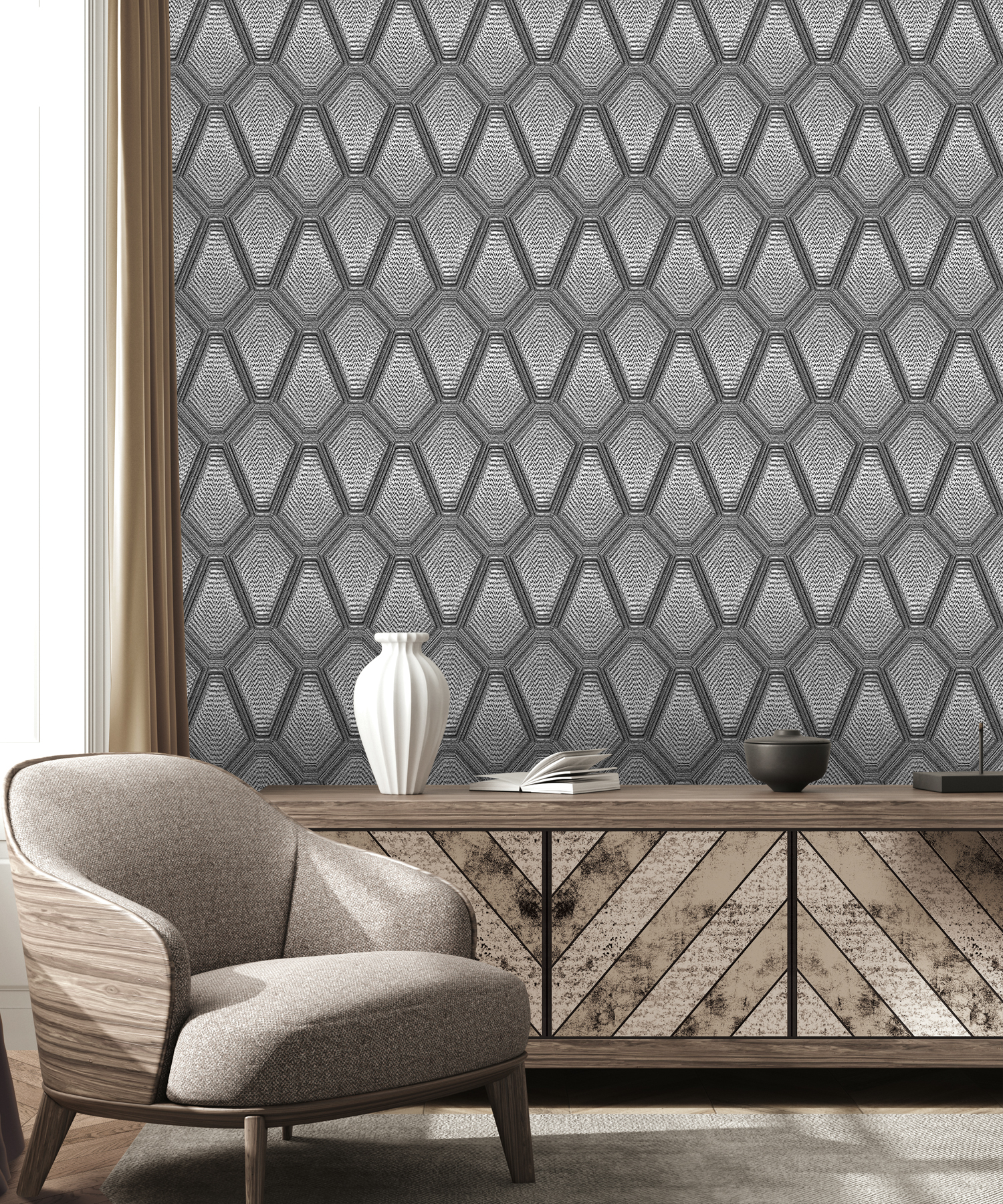 Geometric, Abstract or 3D patterns are a very modern and highly popular choice in wallpaper. Make a statement in your home with our modern geometric and motif wallpaper designs. Find sharp repeated lines for that contemporary style or curved and wavy patterns to suit a more classic theme.