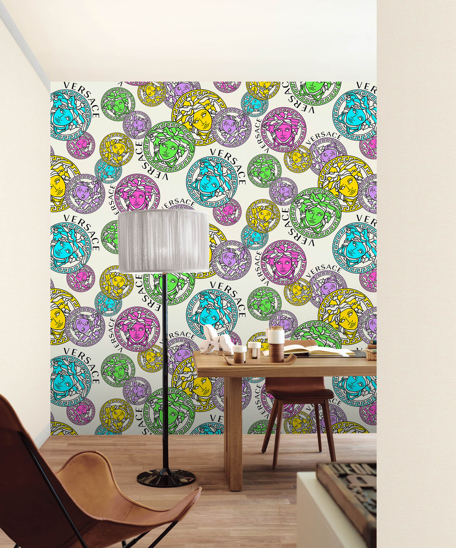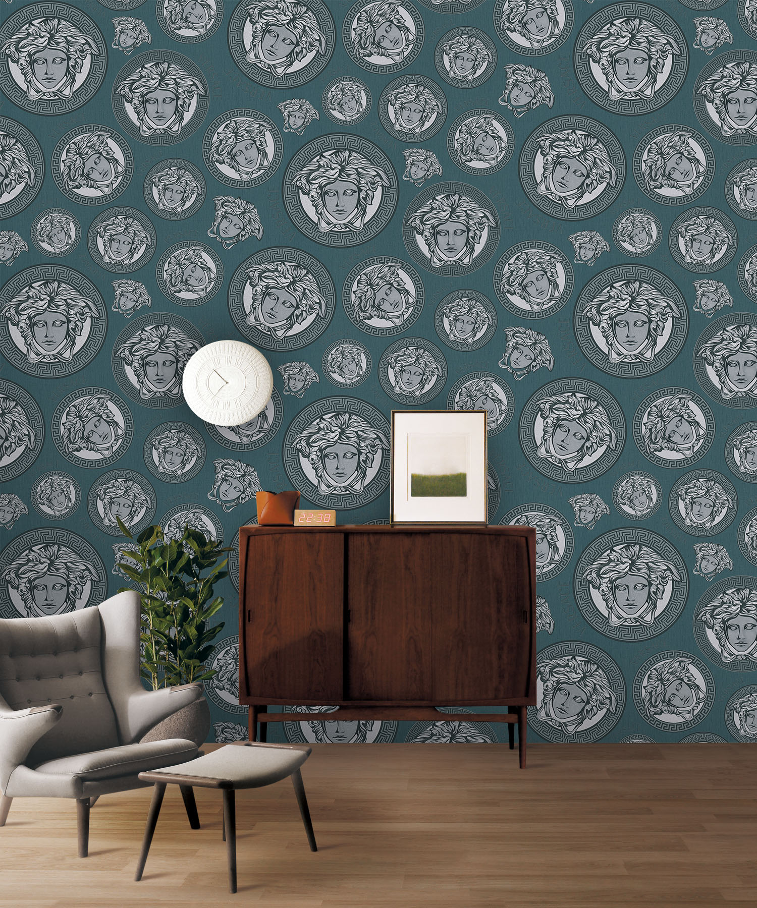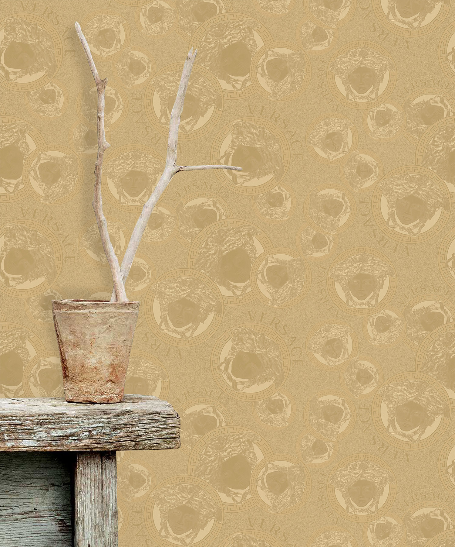 A textured vinyl design that exudes opulence with the iconic Versace logo of Medusa.