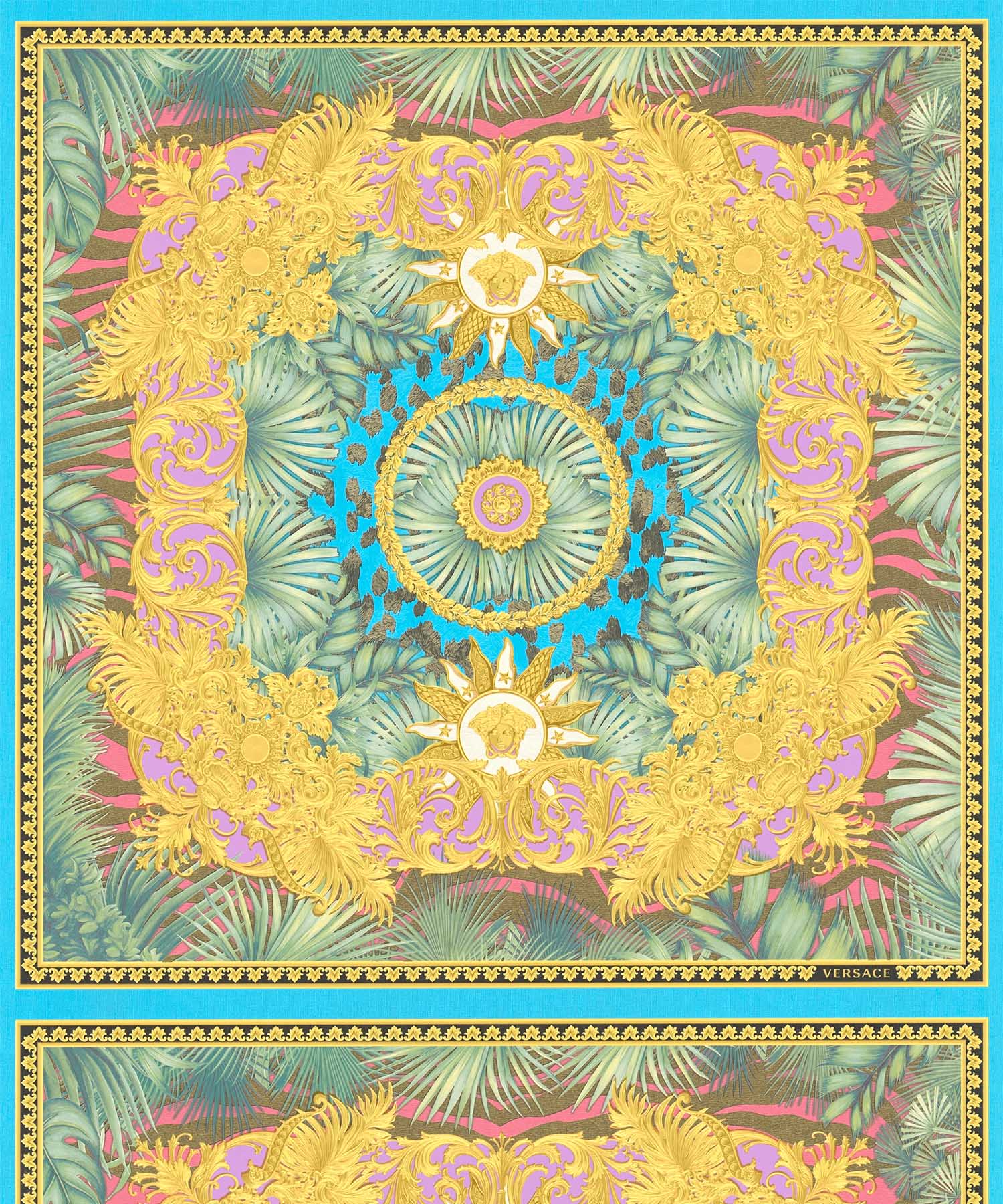 Leopard and tiger print, jungle palm leaves and gold baroque swirls give this...