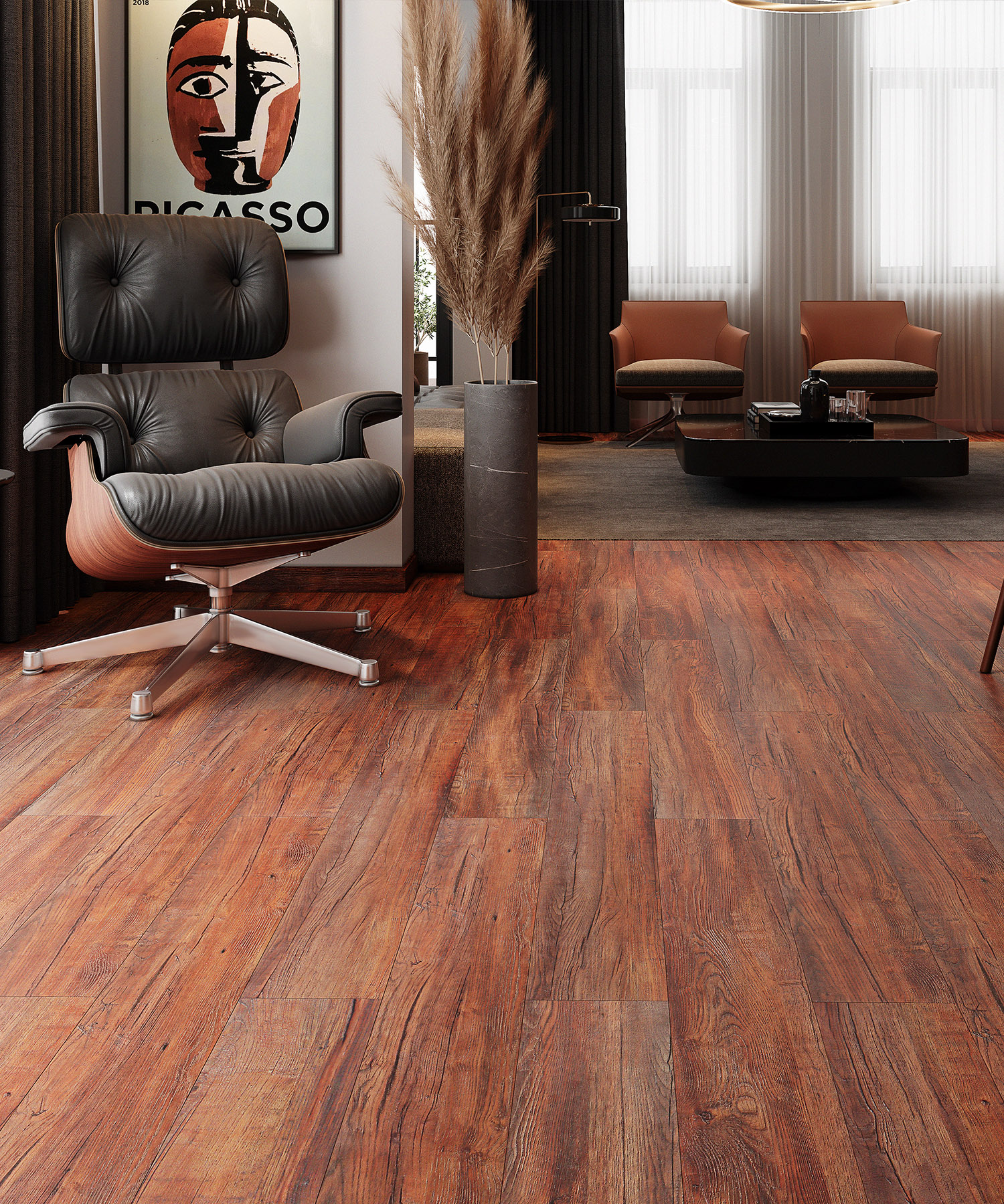 SPC or Stone Polymer Composite is 100% waterproof, designed to install over uneven sub-floors, the most realistic wood-looks with embossed textures, and extremely durable. Its signature rigid core is highly sturdy, making it an ideal choice for high-traffic and commercial environments.